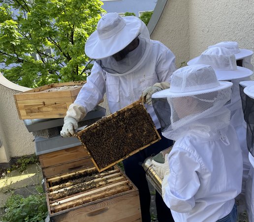 Unsere Schulimkerei – Lernen, Forschen und Schützen 🐝🌼 Hier kümmern wir uns liebevoll um die Betreuung und Vermehrung unserer Honigbienenvölker und pflegen gleichzeitig unseren insektenfreundlichen Schulgarten. Dabei verbinden wir Umweltbildung und Nachhaltigkeit auf ganz praktische Weise – fächerübergreifend und für alle Jahrgangsstufen. Zu den Highlights gehören die Honigernte und der Verkauf unseres eigenen Schulhonigs „Hermanns Honig“, ebenso wie die Herstellung von Wachsprodukten. Besonders stolz sind wir auf unsere Wildbienenforschung, die wir in Kooperation mit der Albert-Ludwigs-Universität Freiburg durchführen. So leisten wir gemeinsam einen Beitrag zum Schutz der Bienen und zur Bewahrung der Natur – direkt vor unserer eigenen Schultür! 🍯🌿